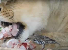 Бесстрашный скворец разделил обед со львом в гродненском зоопарке