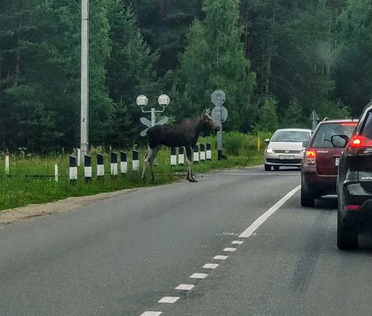 Под Минском лось атаковал автомобили